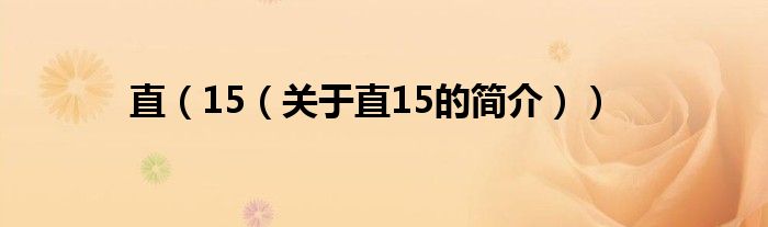 本文關于直 15的簡介就講解完畢,希望對大家有所幫助。