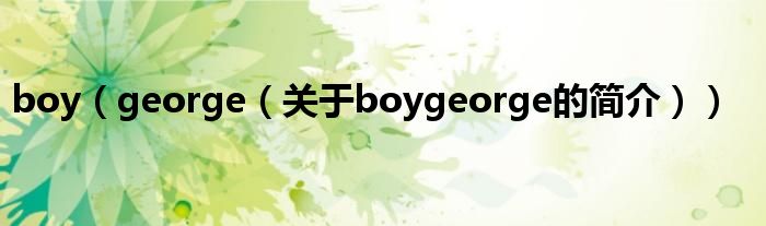 本文關(guān)于boy george的簡介就講解完畢,希望對大家有所幫助。