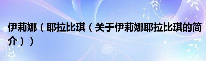 大家好,伊莉娜 耶拉比琪,關于伊莉娜 耶拉比琪的簡介很多人還不知道,現在讓我們一起來看看吧!