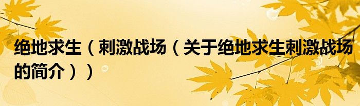 本文關于絕地求生 刺激戰場的簡介就講解完畢,希望對大家有所幫助。