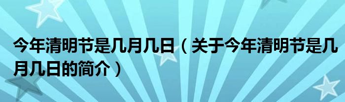 本文關于今年清明節是幾月幾日的簡介就講解完畢,希望對大家有所幫助。