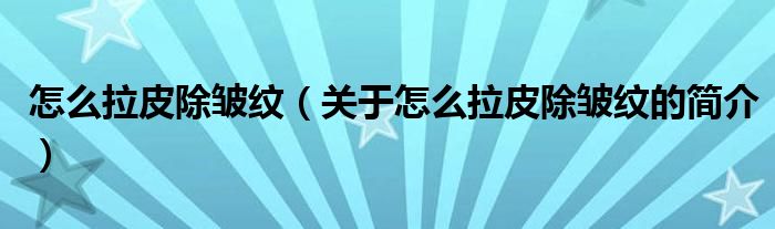 大家好,怎么拉皮除皺紋,關于怎么拉皮除皺紋的簡介很多人還不知道,現在讓我們一起來看看吧!