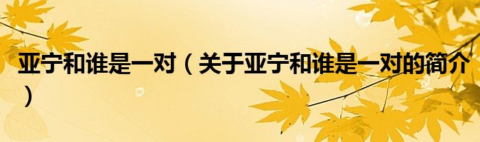大家好,亞寧和誰是一對,關(guān)于亞寧和誰是一對的簡介很多人還不知道,現(xiàn)在讓我們一起來看看吧!