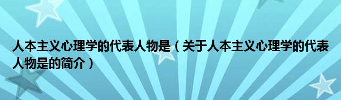 本文關于人本主義心理學的代表人物是的簡介就講解完畢,希望對大家有所幫助。