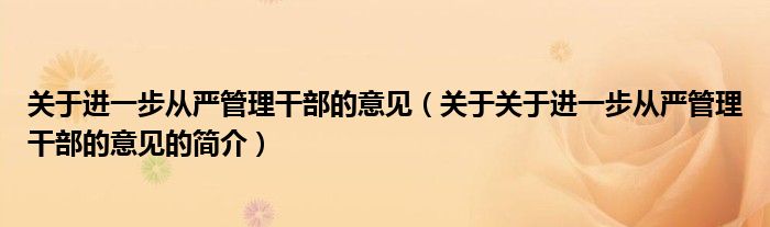 本文關(guān)于關(guān)于進(jìn)一步從嚴(yán)管理干部的意見的簡介就講解完畢,希望對大家有所幫助。
