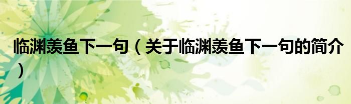 本文關于臨淵羨魚下一句的簡介就講解完畢,希望對大家有所幫助。