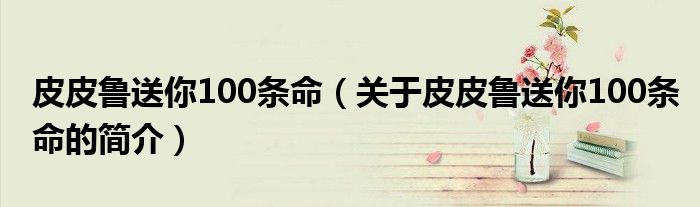 本文關于皮皮魯送你100條命的簡介就講解完畢,希望對大家有所幫助。