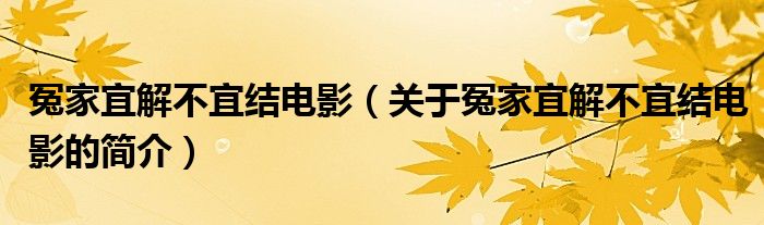 本文關于冤家宜解不宜結電影的簡介就講解完畢,希望對大家有所幫助。