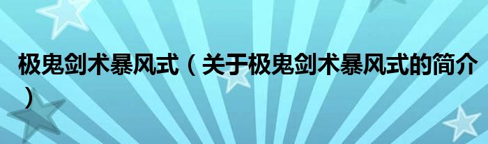 本文關于極鬼劍術暴風式的簡介就講解完畢,希望對大家有所幫助。