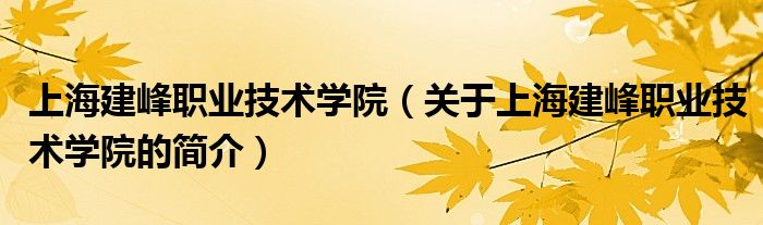 本文關于上海建峰職業技術學院的簡介就講解完畢,希望對大家有所幫助。