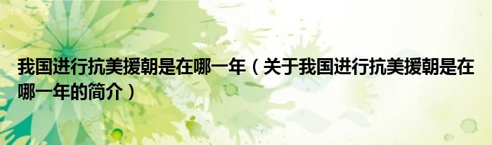 本文關于我國進行抗美援朝是在哪一年的簡介就講解完畢,希望對大家有所幫助。