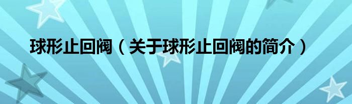 本文關(guān)于球形止回閥的簡(jiǎn)介就講解完畢,希望對(duì)大家有所幫助。
