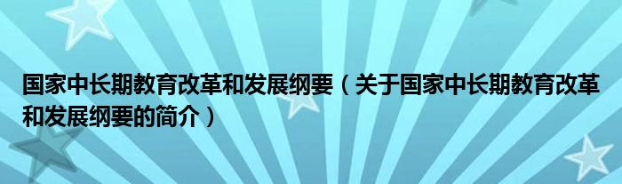 本文關于國家中長期教育改革和發展綱要的簡介就講解完畢,希望對大家有所幫助。