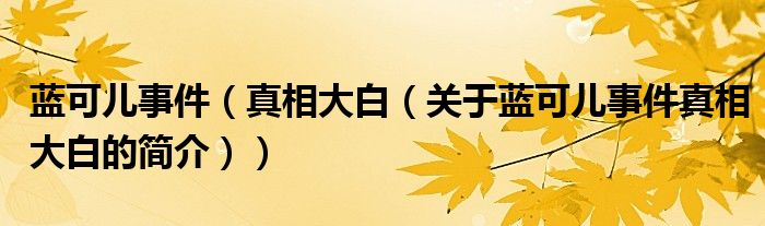 大家好,藍可兒事件 真相大白,關于藍可兒事件 真相大白的簡介很多人還不知道,現在讓我們一起來看看吧!
