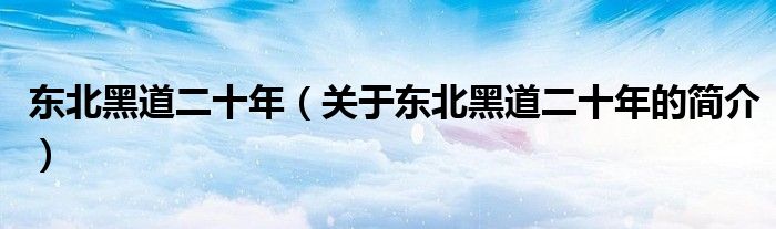 本文關于東北黑道二十年的簡介就講解完畢,希望對大家有所幫助。