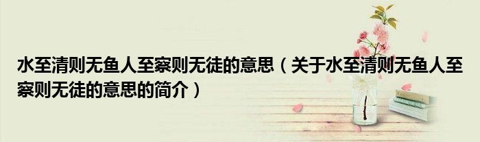 本文關于水至清則無魚人至察則無徒的意思的簡介就講解完畢,希望對大家有所幫助。