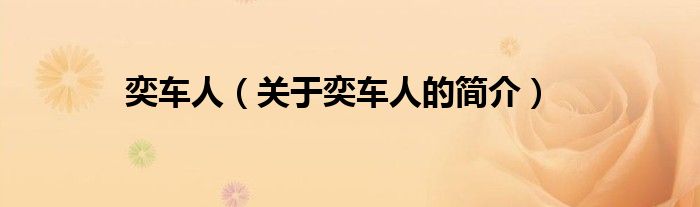 本文關(guān)于奕車人的簡介就講解完畢,希望對大家有所幫助。