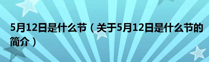 大家好,5月12日是什么節,關于5月12日是什么節的簡介很多人還不知道,現在讓我們一起來看看吧!