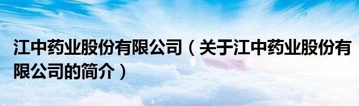本文關于江中藥業股份有限公司的簡介就講解完畢,希望對大家有所幫助。