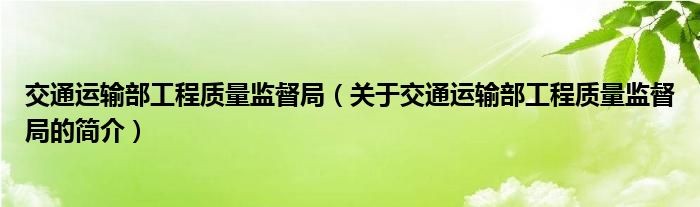 大家好,交通運輸部工程質量監督局,關于交通運輸部工程質量監督局的簡介很多人還不知道,現在讓我們一起來看看吧!