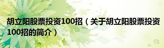 本文關于胡立陽股票投資100招的簡介就講解完畢,希望對大家有所幫助。