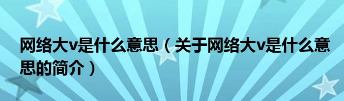 本文關(guān)于網(wǎng)絡(luò)大v是什么意思的簡(jiǎn)介就講解完畢,希望對(duì)大家有所幫助。