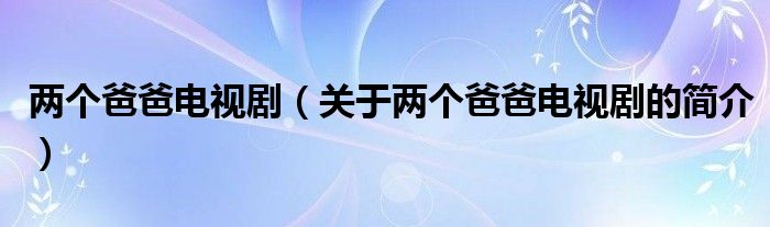 本文關于兩個爸爸電視劇的簡介就講解完畢,希望對大家有所幫助。