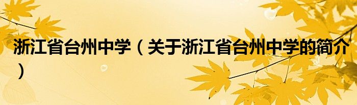 本文關于浙江省臺州中學的簡介就講解完畢,希望對大家有所幫助。