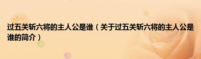 大家好,過五關斬六將的主人公是誰,關于過五關斬六將的主人公是誰的簡介很多人還不知道,現在讓我們一起來看看吧!