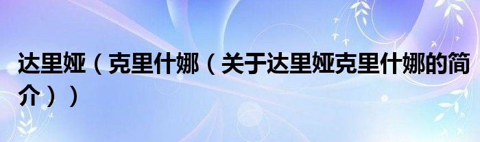 大家好,達里婭 克里什娜,關于達里婭 克里什娜的簡介很多人還不知道,現在讓我們一起來看看吧!