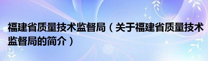 本文關于福建省質量技術監督局的簡介就講解完畢,希望對大家有所幫助。