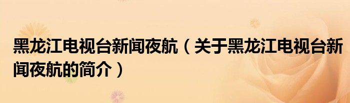 本文關于黑龍江電視臺新聞夜航的簡介就講解完畢,希望對大家有所幫助。