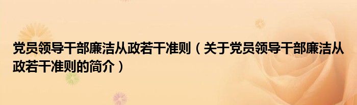 本文關于黨員領導干部廉潔從政若干準則的簡介就講解完畢,希望對大家有所幫助。