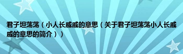 本文關于君子坦蕩蕩 小人長戚戚的意思的簡介就講解完畢,希望對大家有所幫助。