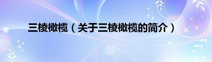 大家好,三棱橄欖,關于三棱橄欖的簡介很多人還不知道,現在讓我們一起來看看吧!