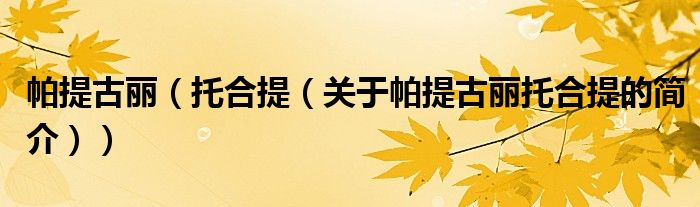 本文關于帕提古麗 托合提的簡介就講解完畢,希望對大家有所幫助。