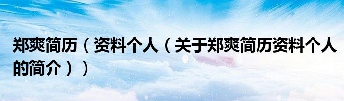 本文關于鄭爽簡歷 資料個人的簡介就講解完畢,希望對大家有所幫助。