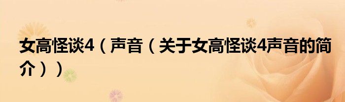 本文關于女高怪談4 聲音的簡介就講解完畢,希望對大家有所幫助。