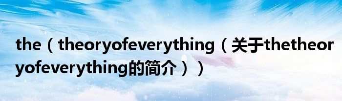 大家好,the theory of everything,關于the theory of everything的簡介很多人還不知道,現在讓我們一起來看看吧!