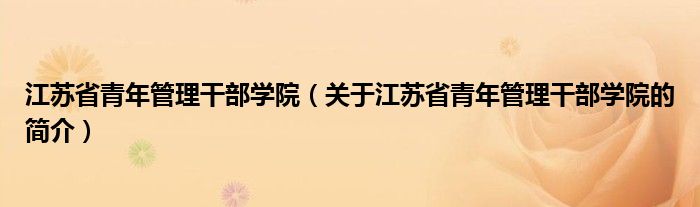 本文關于江蘇省青年管理干部學院的簡介就講解完畢,希望對大家有所幫助。