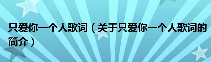 本文關(guān)于只愛(ài)你一個(gè)人歌詞的簡(jiǎn)介就講解完畢,希望對(duì)大家有所幫助。