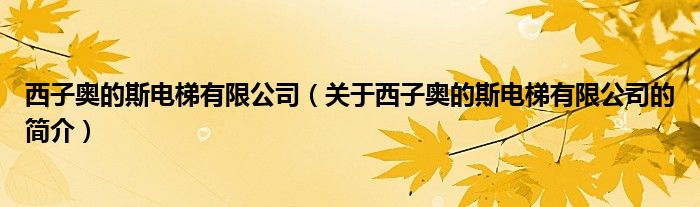 本文關于西子奧的斯電梯有限公司的簡介就講解完畢,希望對大家有所幫助。