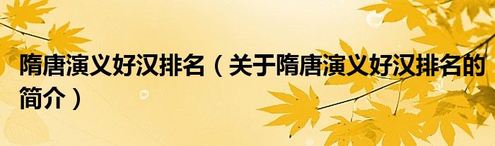 本文關于隋唐演義好漢排名的簡介就講解完畢,希望對大家有所幫助。
