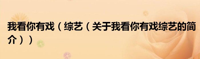 本文關(guān)于我看你有戲 綜藝的簡(jiǎn)介就講解完畢,希望對(duì)大家有所幫助。