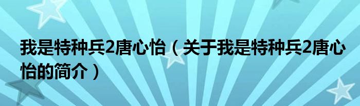 本文關于我是特種兵2唐心怡的簡介就講解完畢,希望對大家有所幫助。