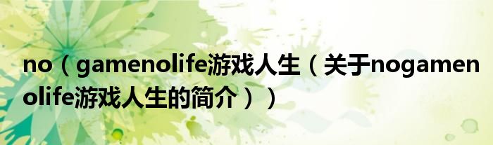 本文關于no game no life 游戲人生的簡介就講解完畢,希望對大家有所幫助。