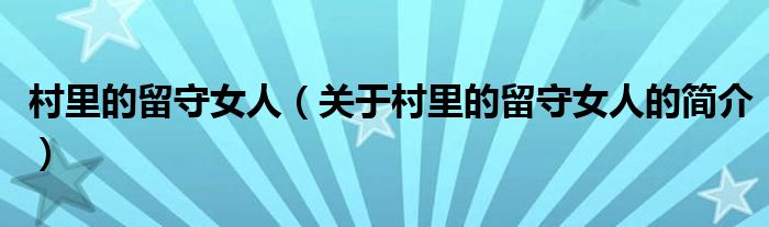 大家好,村里的留守女人,關(guān)于村里的留守女人的簡介很多人還不知道,現(xiàn)在讓我們一起來看看吧!