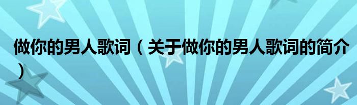 本文關于做你的男人歌詞的簡介就講解完畢,希望對大家有所幫助。