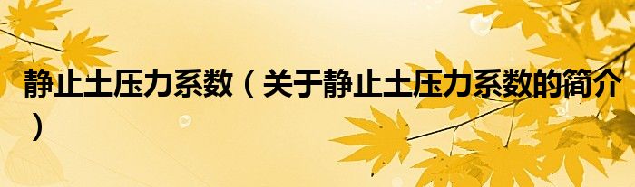 本文關于靜止土壓力系數的簡介就講解完畢,希望對大家有所幫助。