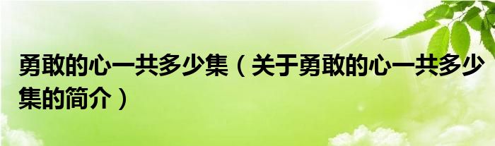 本文關于勇敢的心一共多少集的簡介就講解完畢,希望對大家有所幫助。